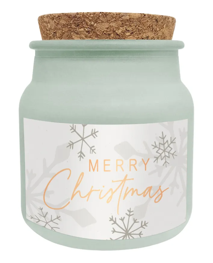 Diese Weihnachtskerze zeichnet sich durch ihre kompakte Größe mit einer Länge und Breite von jeweils 6 cm sowie einer Höhe von 7,5 cm aus. Das Gewicht beträgt 0,214 kg. Die Kerze befindet sich in einem zylindrischen, matten Glasbehälter in einem hellen Grünton. Ein passender, naturbelassener Korkdeckel verschließt das Glas. Das Etikett zeigt den Aufdruck ‚Merry Christmas‘ in beige-goldener Schrift und ist mit dezenten, grauen Schneeflockenmotiven gestaltet. Die Farbkombination aus Grün, Beige und Naturtönen sorgt für eine dezente, winterliche Optik. Das Produkt besteht aus Wachs, Glas und Naturmaterialien wie Kork. Die Brenndauer beträgt etwa 15 Stunden. Die Kerze ist für den Innenbereich geeignet und ergänzt mit ihrem festlichen Motiv saisonale Dekorationen.