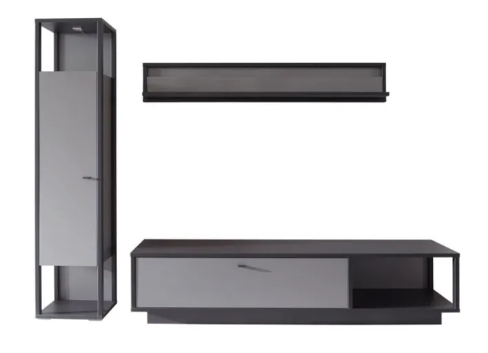 Mit der in Royal-Grau und Anthrazit gehaltenen, 3-teiligen Wohnwand LUXOR I entscheidet man sich für ein Produkt, das optisch genauso punktet wie praktisch.