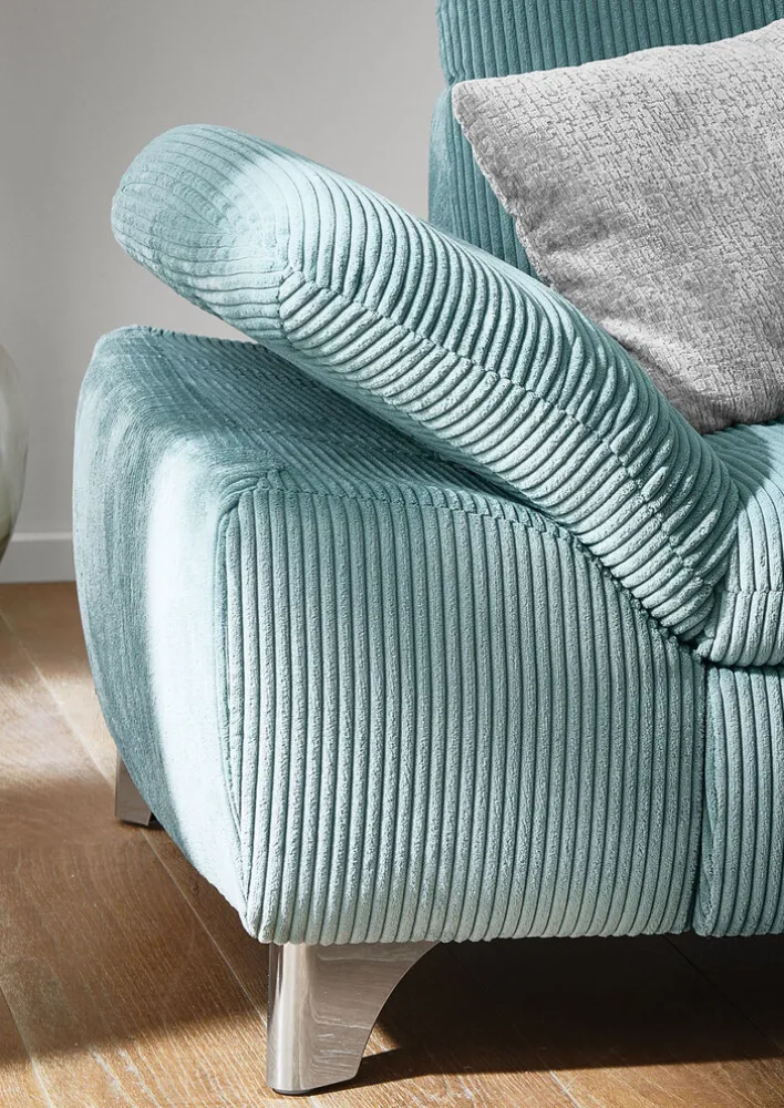 Wir stellen Ihnen die prächtige YoungLife Wohnlandschaft CHATELET in einem atemberaubenden aquablauen Farbton vor. Machen Sie sich bereit für das ultimative Entspannungserlebnis mit dieser außergewöhnlichen Wohnlandschaft, die Ihren Lebensraum in eine luxuriöse Oase verwandeln wird. Die mit viel Liebe zum Detail entworfenen Armlehnen des CHATELET sind feststehend und sorgen für maximale Stabilität und Komfort. Mit den großzügigen Maßen von 306 x 197 cm bietet diese Wohnlandschaft Ihnen und Ihren Lieben ausreichend Platz, um sich zu entspannen und schöne Erinnerungen zu schaffen. Das CHATELET ist aus exquisitem Kordstoff gefertigt und lässt Sie bei jeder Berührung in eine Welt der Üppigkeit eintauchen. Der Stoffbezug verleiht der Wohnlandschaft einen Hauch von Eleganz und Raffinesse und hebt die Gesamtästhetik dieser Wohnlandschaft auf ein neues Niveau.Aber das ist noch nicht alles! Die echte Rückseite des CHATELET ist ein Beweis für seine überlegene Handwerkskunst. Sie wurde so konzipiert, dass sie eine optimale Unterstützung bietet und die richtige Körperhaltung fördert. So können Sie sich von lästigen Rückenschmerzen verabschieden und die Entspannung in den Mittelpunkt stellen. Lassen Sie sich von der YoungLife Wohnlandschaft CHATELET aqua verzaubern und erheben Sie Ihr Zuhause in neue Dimensionen der Eleganz und Raffinesse. Lassen Sie sich von der kompromisslosen Qualität, dem tadellosen Design und dem unerschütterlichen Komfort der CHATELET begeistern. Ergreifen Sie die Gelegenheit, Ihren Wohnraum zu verändern und in ein Reich des Luxus einzutreten, das die Art und Weise, wie Sie sich entspannen und erholen, neu definieren wird. Schenken Sie sich selbst den puren Genuss, denn Sie haben nichts anderes verdient.