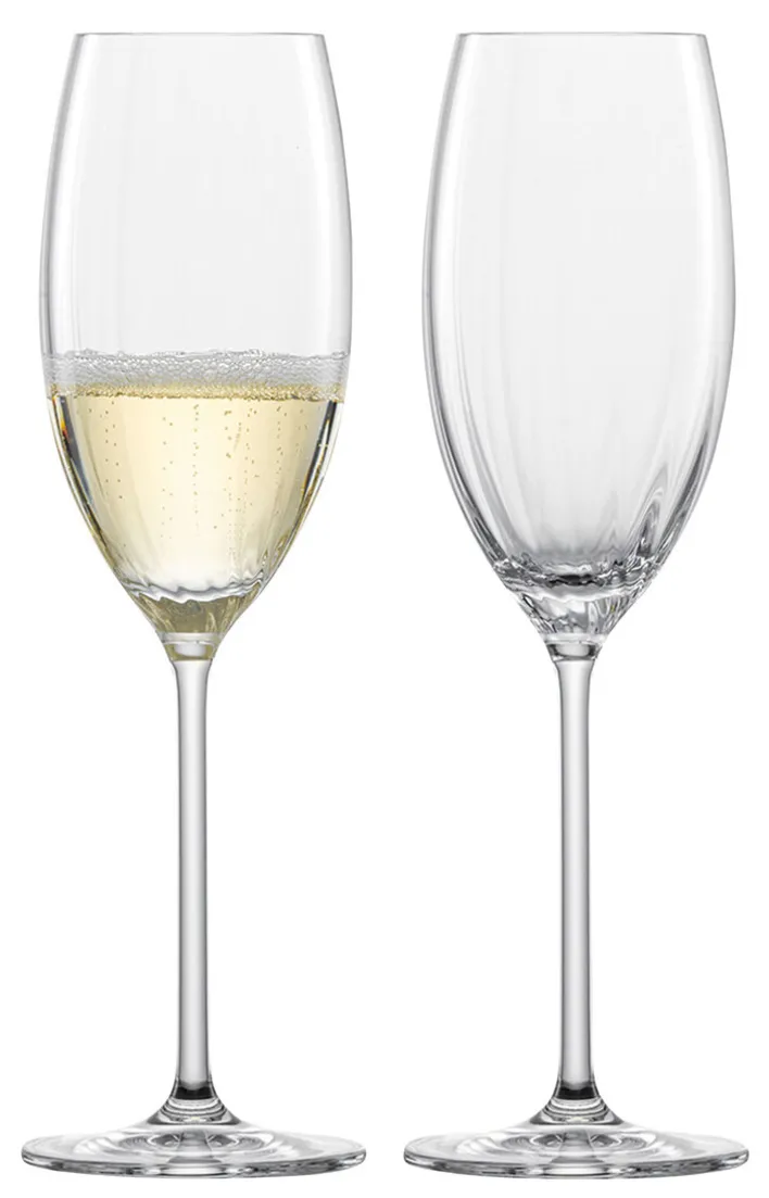 Das ZWIESEL GLAS Champagnerglas PRIZMA ist im praktischen 2er-Set erhältlich und begeistert mit einem modernen, transparenten Design. Außerdem bietet es ein Volumen von 288 ml.