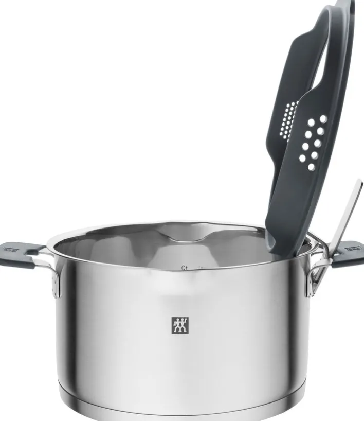 Die Töpfe verfügen über einen Sandwichboden und sind mit Stay-cool-Griffen ausgestattet. Eine innenliegende Skale hilft beim Abmessen von Flüssigkeiten für Suppen und Soßen. Ein im Deckel integriertes Sieb erleichtert das Abgießen von Nudelwasser. Die Kochtöpfe SIMPLIFY können auf allen Herdarten eingesetzt werden und lassen sich bis 180° im Backofen verwenden.